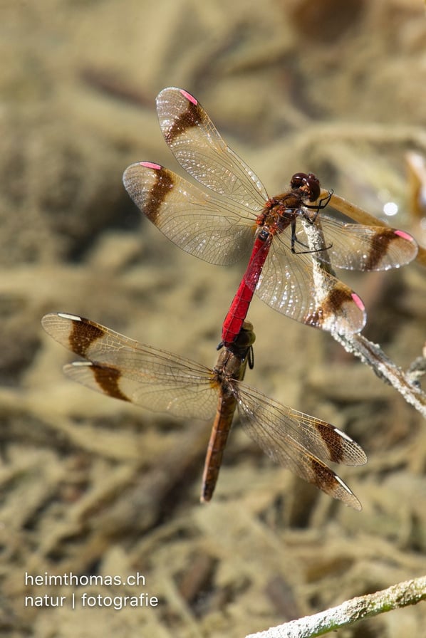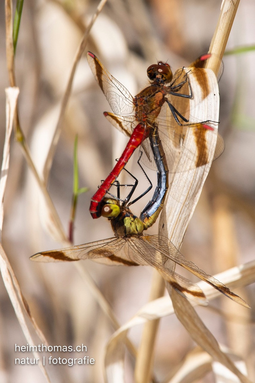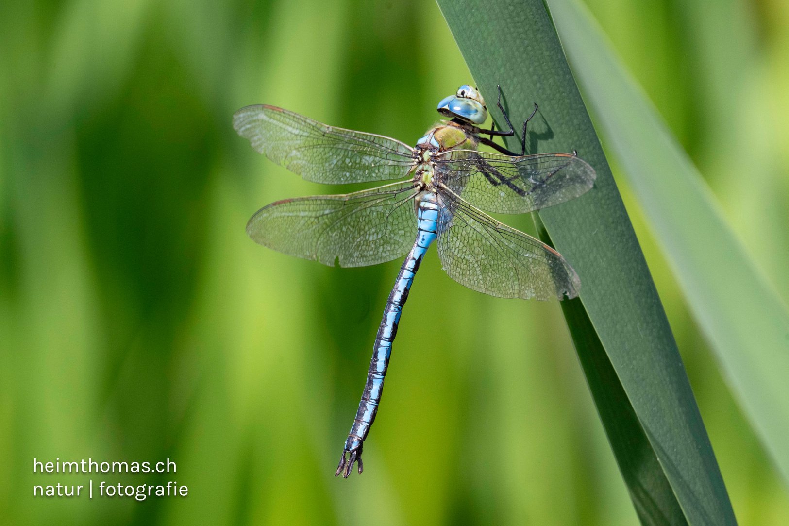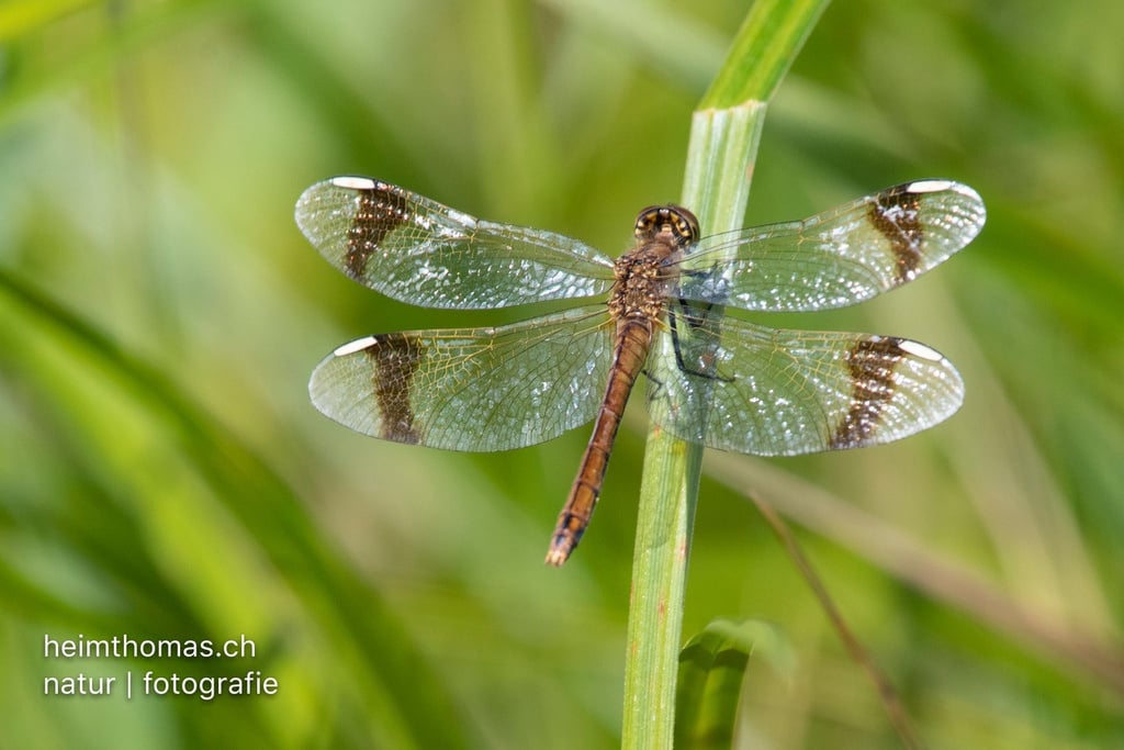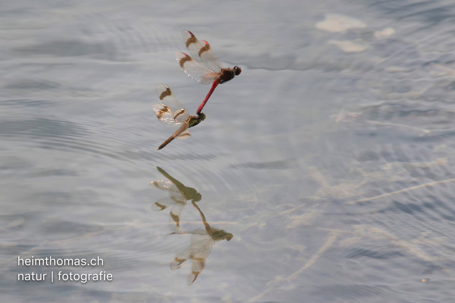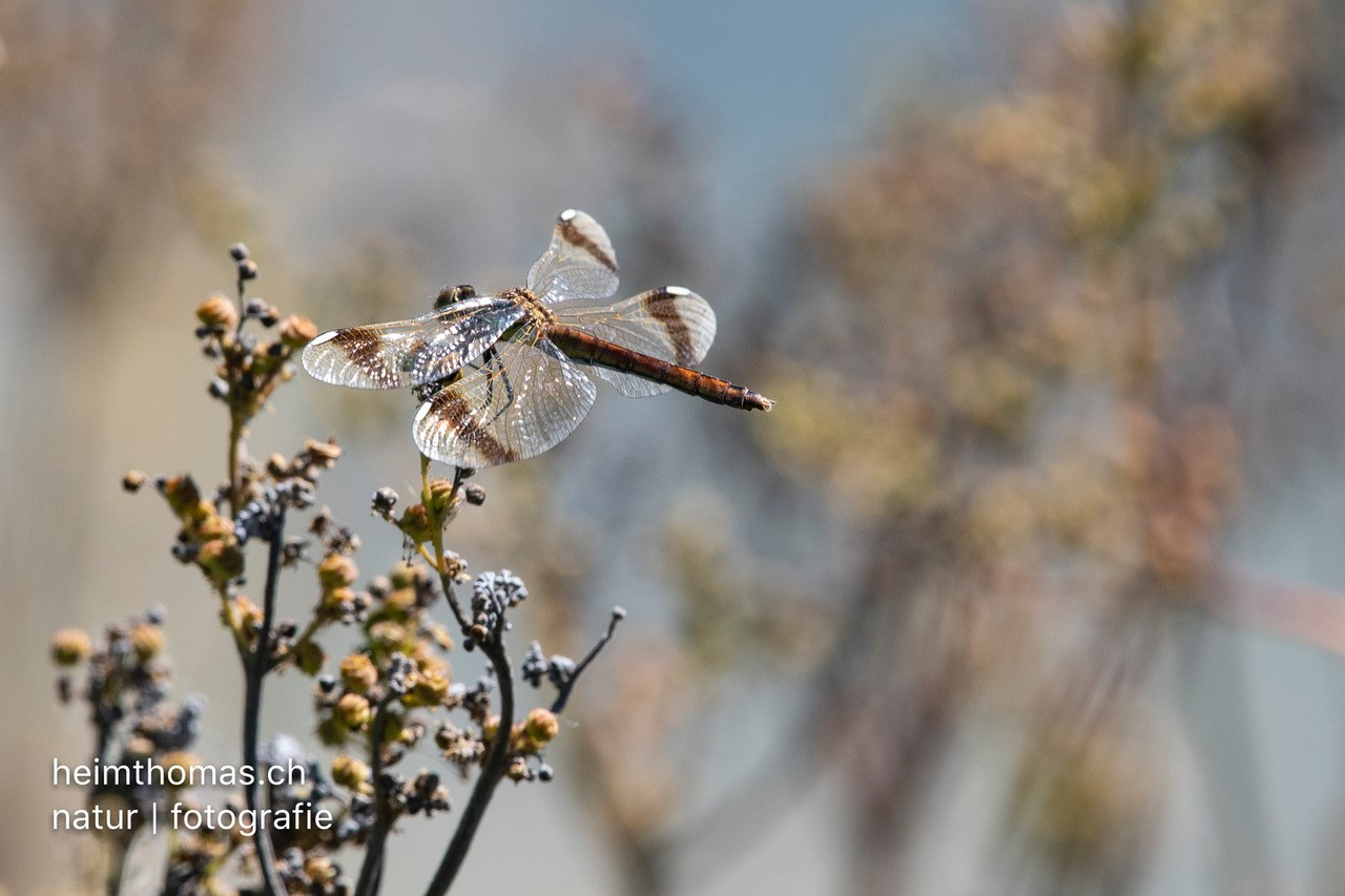meine bevorzugten einstellungen: autofokus auf 2 – 3 m einstellen, das heranfliegende objekt vor einem neutralen hintergrund mit nachführendem autofokus erfassen und im serienmodus fotografieren. belichtungszeit: 2000stel oder kleiner; belichtungsautomatik mit geringer korrektur, je nach hintergrund und glanzlichtern. die makroobjektive (vorzugsweise im bereich von 200 mm) kann man immer noch für sitzende individuen verwenden. sonst bevorzuge ich das leichte 300 mm f4 objektiv von nikon (mit fresnellinse); die canon-fotografen haben hier einen vorteil mit dem leichten und superscharfen 300 mm f2.8 objektiv. der sommer 2020 war sehr heiss – es gab an geeigneten orten viele libellen. einige beispielbilder möchte ich hier vorstellen.