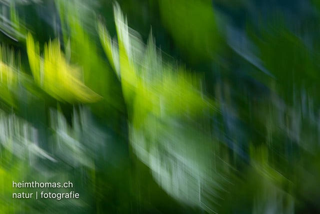 bei bewegten objekten möchte man im allgemeinen, dass zumindest ein teil des bildes scharf dargestellt wird. man kann das durch mittlere verschlusszeiten (bei Libellen z.B. 1/1000 s – 1/500 s) oder durch mitziehen erreichen. aktives verschwenken der kamera oder zoomen während der belichtung erfordert längere belichtungszeiten (z.B. 0.5 s), also meistens sehr niedrige ISO-werte und stark geschlossene blende (bei schönem wetter im bereich von ISO 64 und blende 20). auch filter können eingesetzt werden, um die lichtmenge zu reduzieren. der neueste schrei: statt des zoomrings kann die kamera während der aufnahme gedreht werden, wodurch bilder mit einer strudelwirkung entstehen. interessant ist, dass die belichtung beim ein- oder auszoomen am selben objekt unterschiedlich herauskommt: bei dunklen objekten vor hellem hintergrund (z.b. blume vor himmel) bewirkt einzoomen ein dunkles, sattes bild, während auszoomen ohne korrektur zu einem high-key-effekt führen kann. meine lieblingskamera für solche arbeiten ist die d850: schön leicht, sehr leistungsfähig und einfach zu bedienen. schnelligkeit ist hier nicht so wichtig